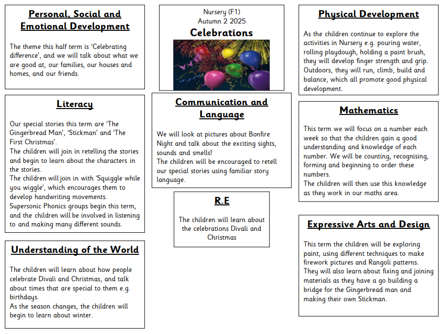 The current 'Jigsaw' theme (our focus for Personal, Social and Emotional development) is ‘Celebrating difference’, and we will talk about what we are good at, our families, our houses and homes, and our friends.